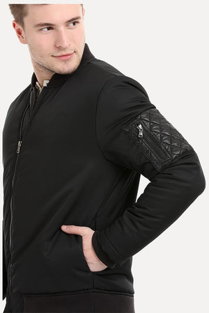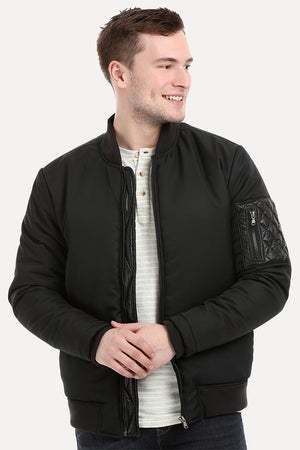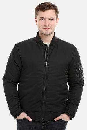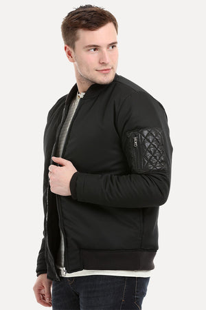 Knitted Sleeves Bomber Denim Jacket