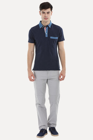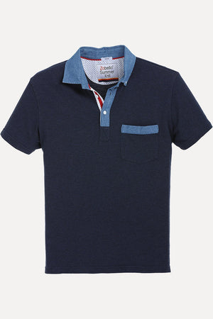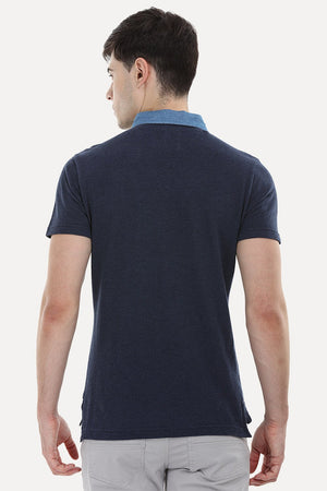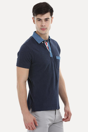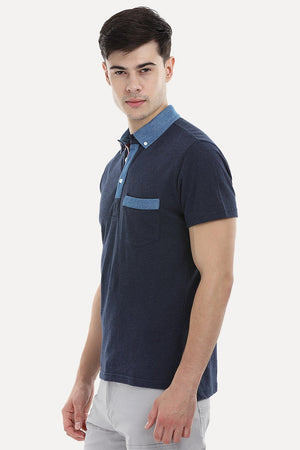 Contrast Placket Navy Polo T-Shirt